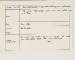 Nedstyrtet amerikansk bombemaskine (Boing B-17 Flyvende Fæstning) ved Ryde på Lolland
