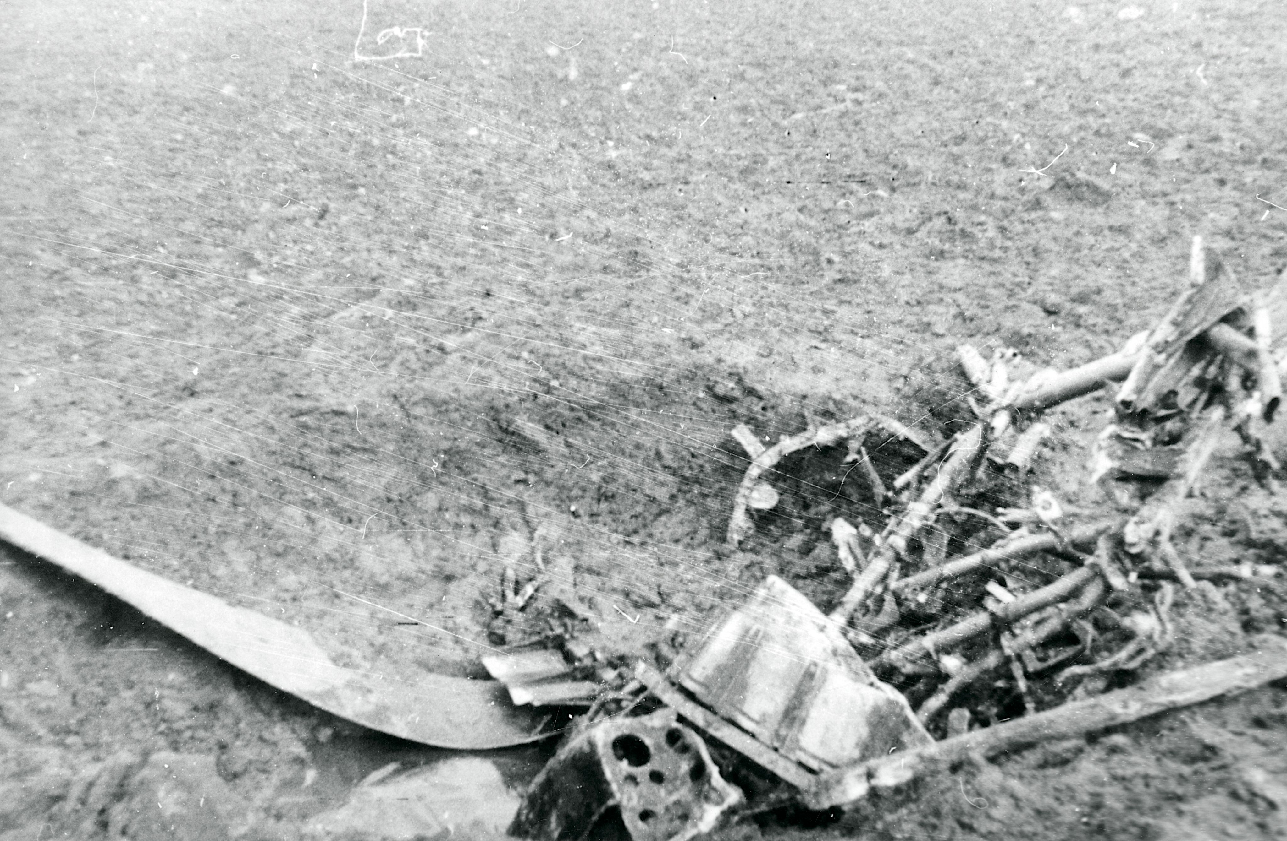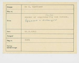 Maskingenkendt tekst fra fotokuvert: Rester af engelsk fly ved Holbæk.