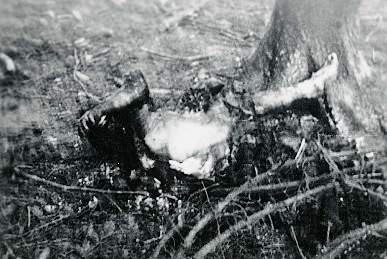 Maskingenkendt tekst fra fotokuvert: WCL. 5 fotos af forulykkede englændere efter en nedstyrtning. Uden stedsangivelse eller tidsangivelse