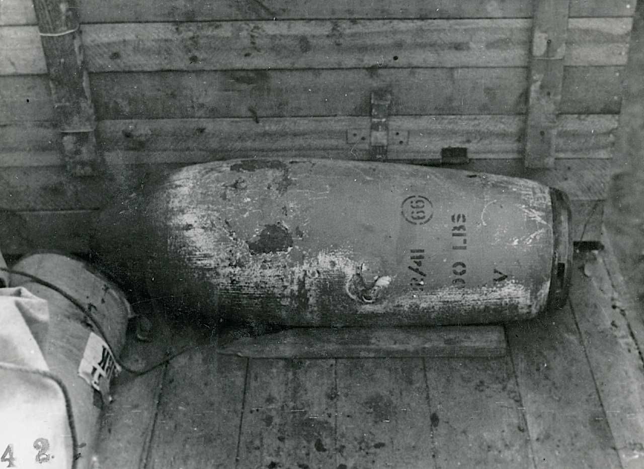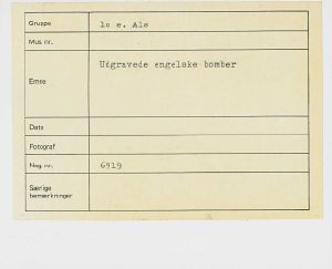 Maskingenkendt tekst fra fotokuvert: Udgravede engelske bomber