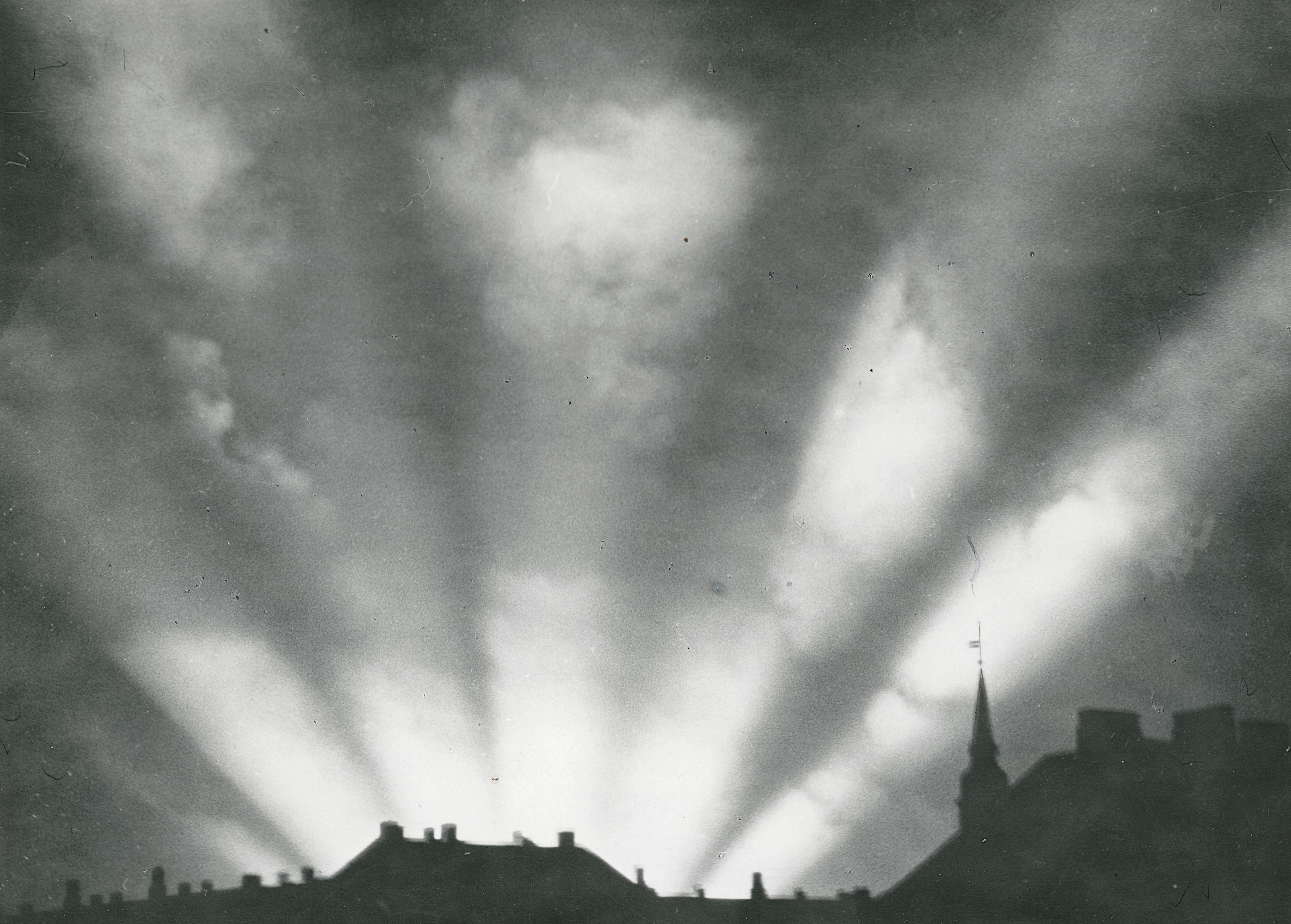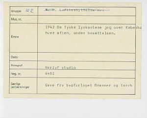 Maskingenkendt tekst fra fotokuvert: De Tyske lyskastere jog over Købeiha hver aften, under besættelsen. 1942.