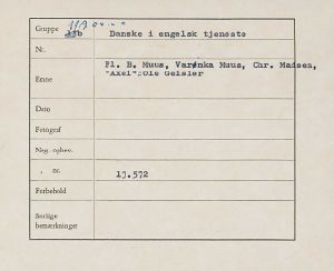 Maskingenkendt tekst fra fotokuvert: Fl. B. Muus, Varinka Muus, Chr. Macsen, "Axel" Ole Geisler