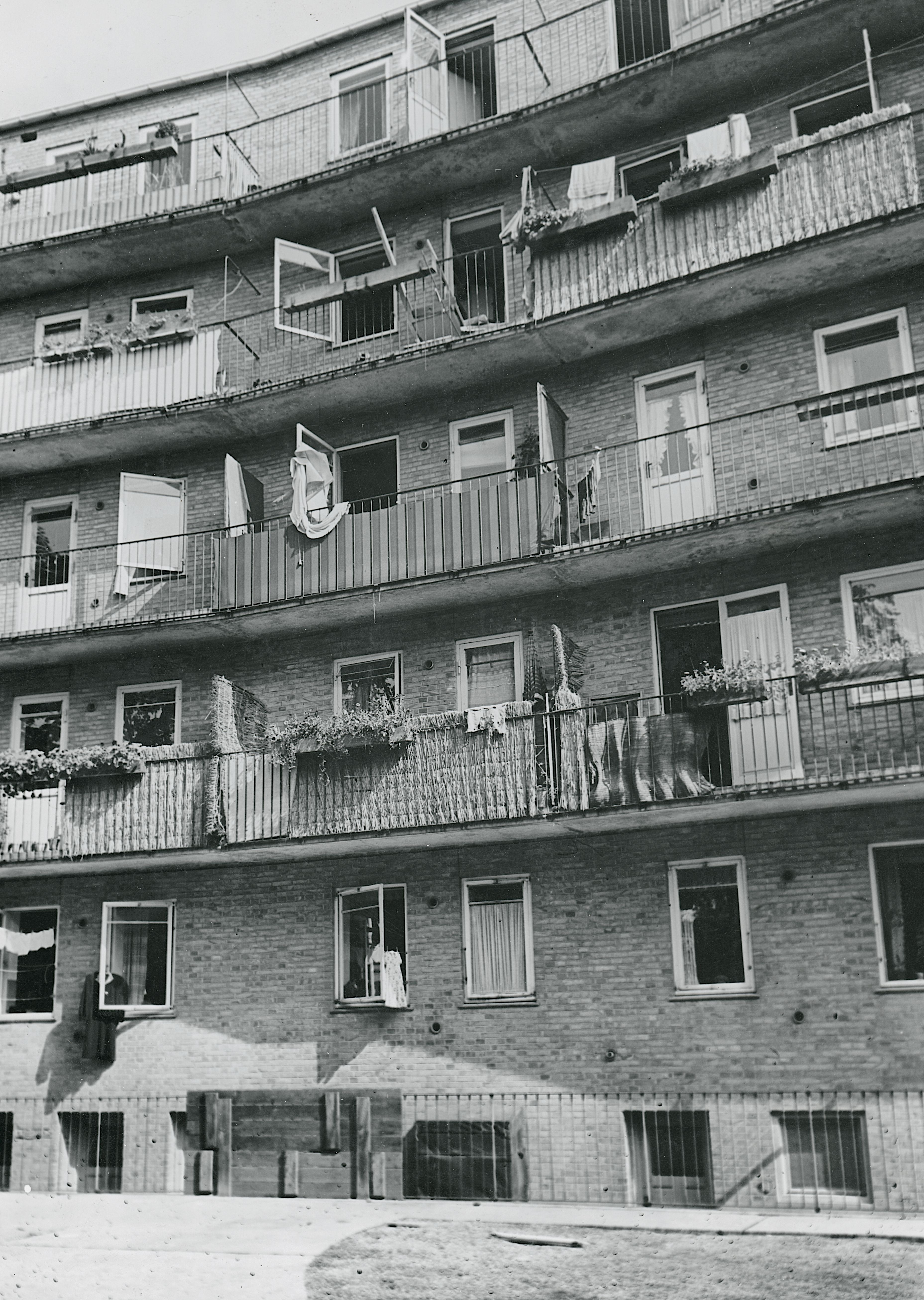 Bagsiden af ejendommen på J. M. Thielesvej på Frederiksberg, hvor faldskærmsagenten Erik Boelskov og en hjælper dræbtes den 25.8.1943 ved et uheld under arbejdet med bombefremstilling. En kriminalbetjent og en Falck-redder blev dræbt ved yderligere en eksplosion under rydningsarbejdet.