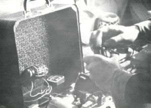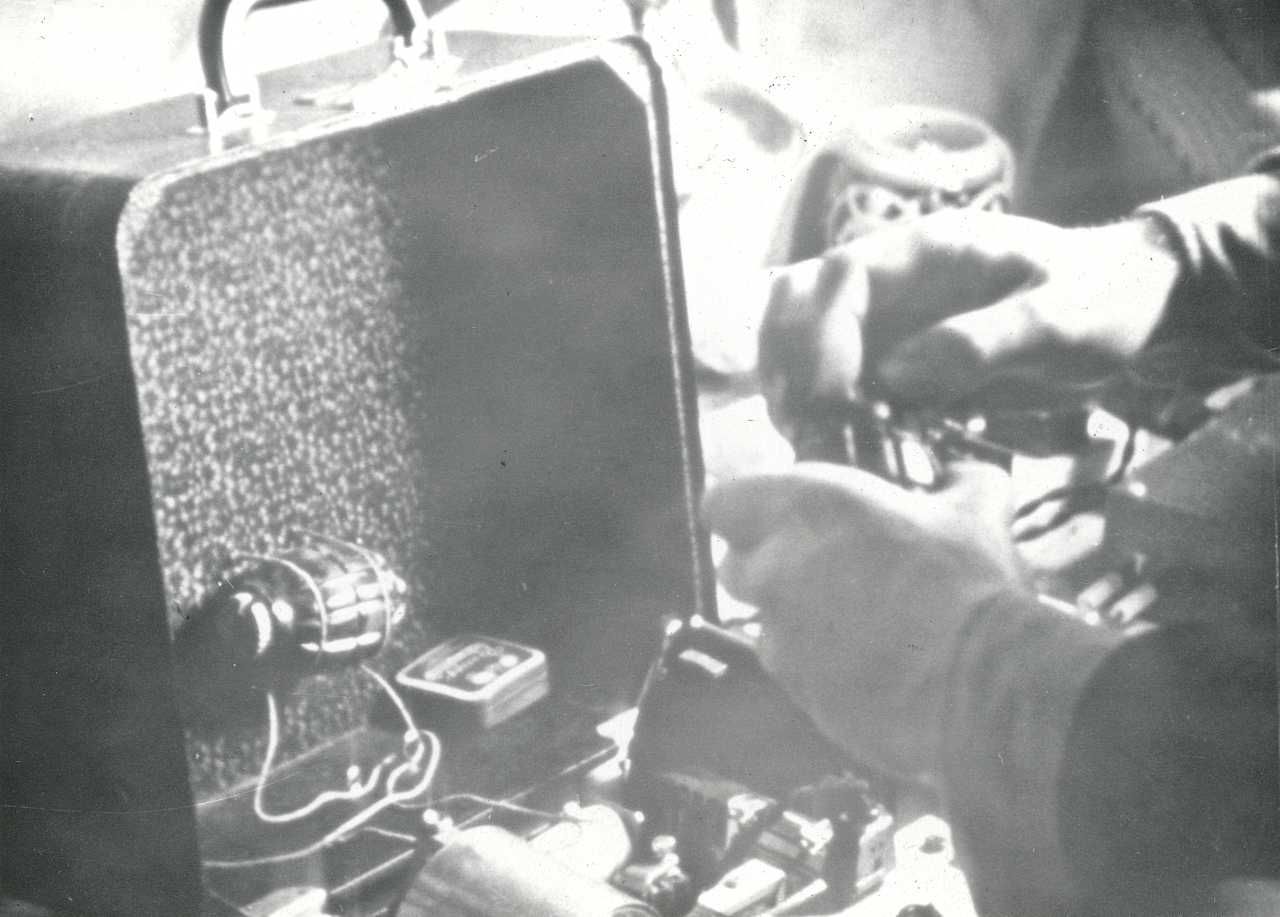 Maskingenkendt tekst fra fotokuvert: Transportabel radio, Morse.