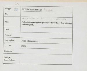 Maskingenkendt tekst fra fotokuvert: Sabotagegruppen på åstedet for Jernbane-sabotagen.