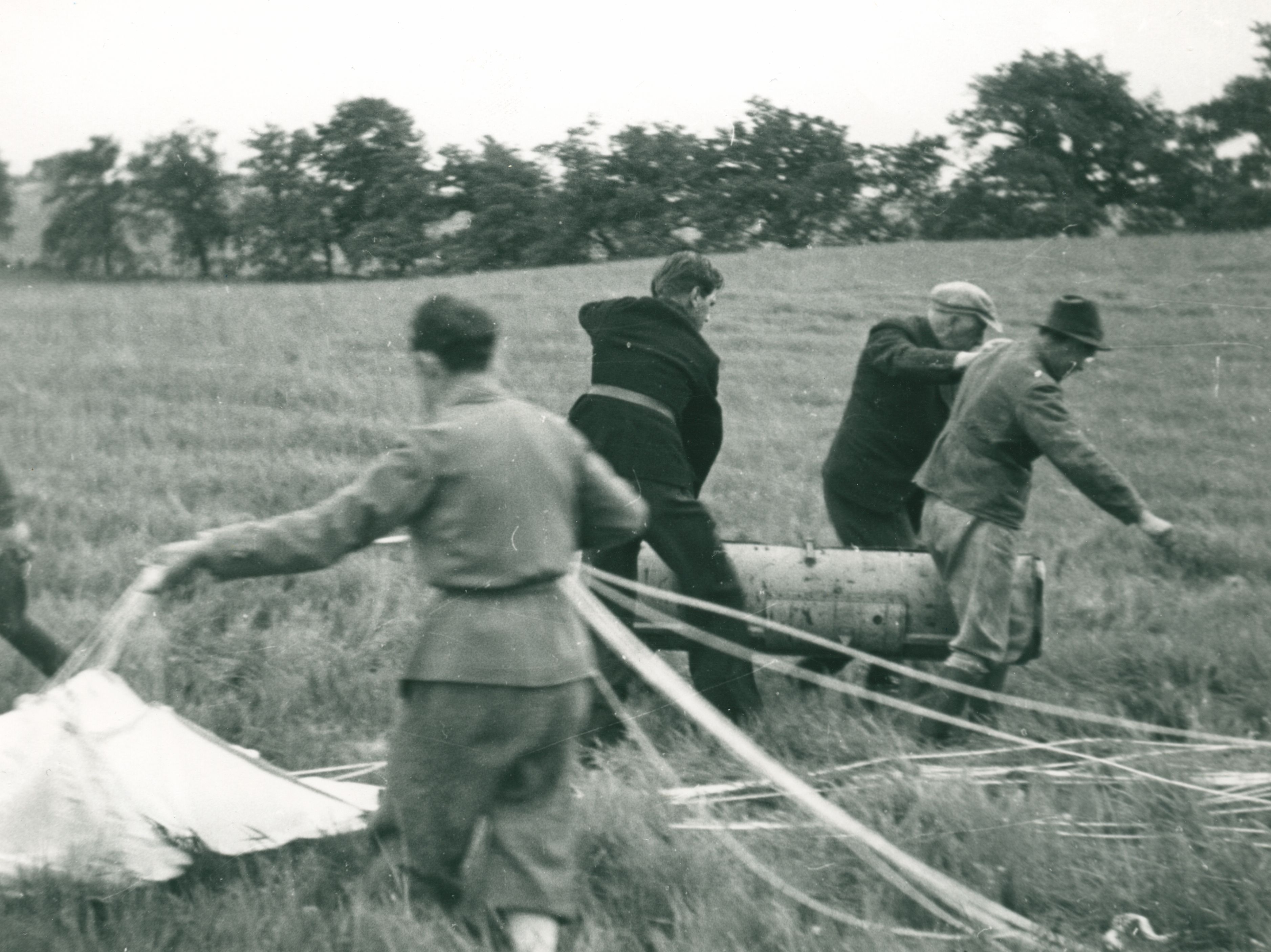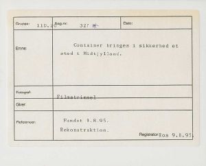 Maskingenkendt tekst fra fotokuvert: Container bringes i sikkerhed et sted i Midtjylland.