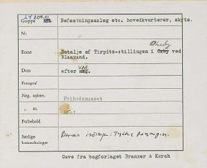 Maskingenkendt tekst fra fotokuvert: Detalje af Tirpitz-stillingen i Oxby ved Blaavand.