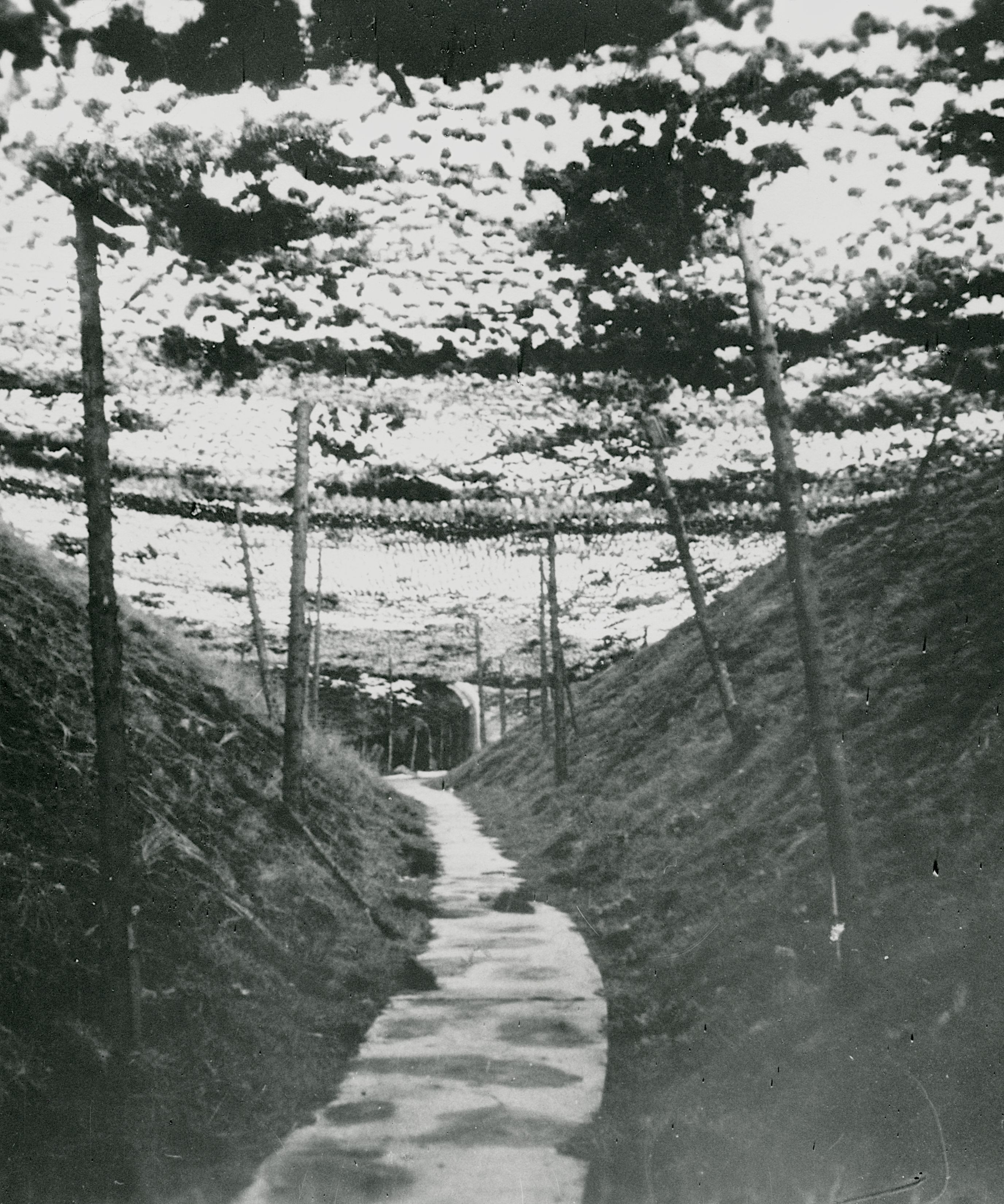 Maskingenkendt tekst fra fotokuvert: Løbegrav kamufleret