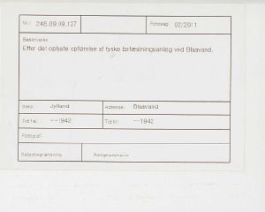Maskingenkendt tekst fra fotokuvert: Efter det oplyste opførelse af tyske befæstningsanlæg ved Blaavand.