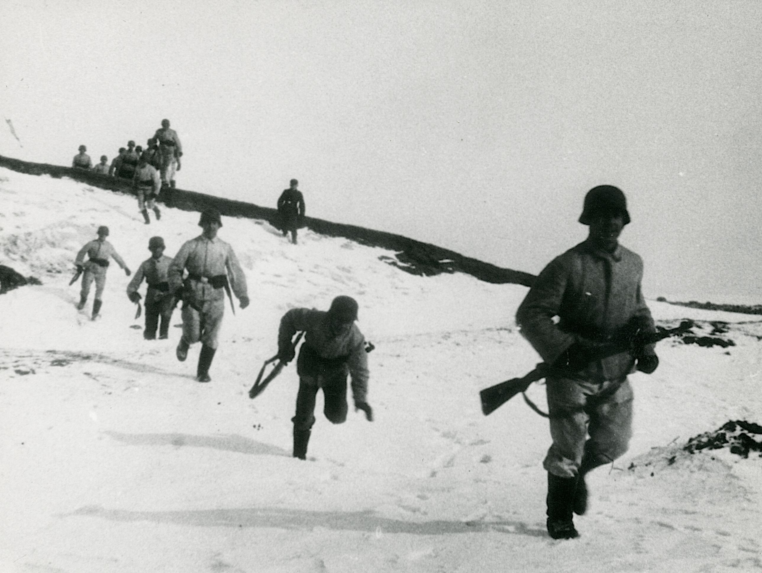 Maskingenkendt tekst fra fotokuvert: Tyske soldater på øvelse vinteren 1944 nær Ålborg.