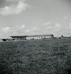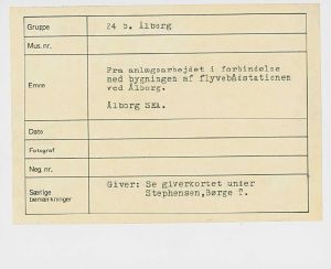 Maskingenkendt tekst fra fotokuvert: Fra anlægsarbejdet i forbibdelse med bygningen af flyvebådstationen ved Ålborg. Ålborg SEA.
