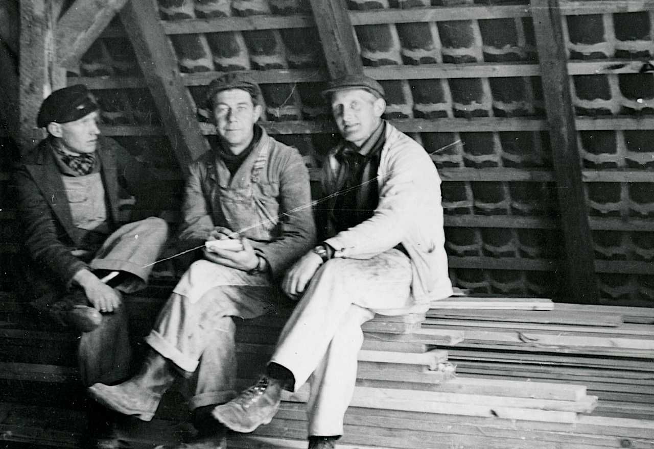 Maskingenkendt tekst fra fotokuvert: Rørdal, Aalborg, septemper 1940. Arbejdernes ulyst til at arbejde ytrede sig bl.a. ved at de kort efter at være mødt på arbejdspladsen.
