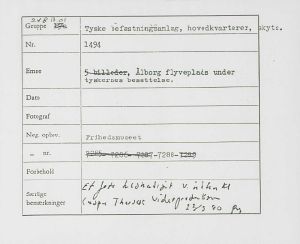 Maskingenkendt tekst fra fotokuvert: Ålborg flyveplads under tyskernes besættelse.