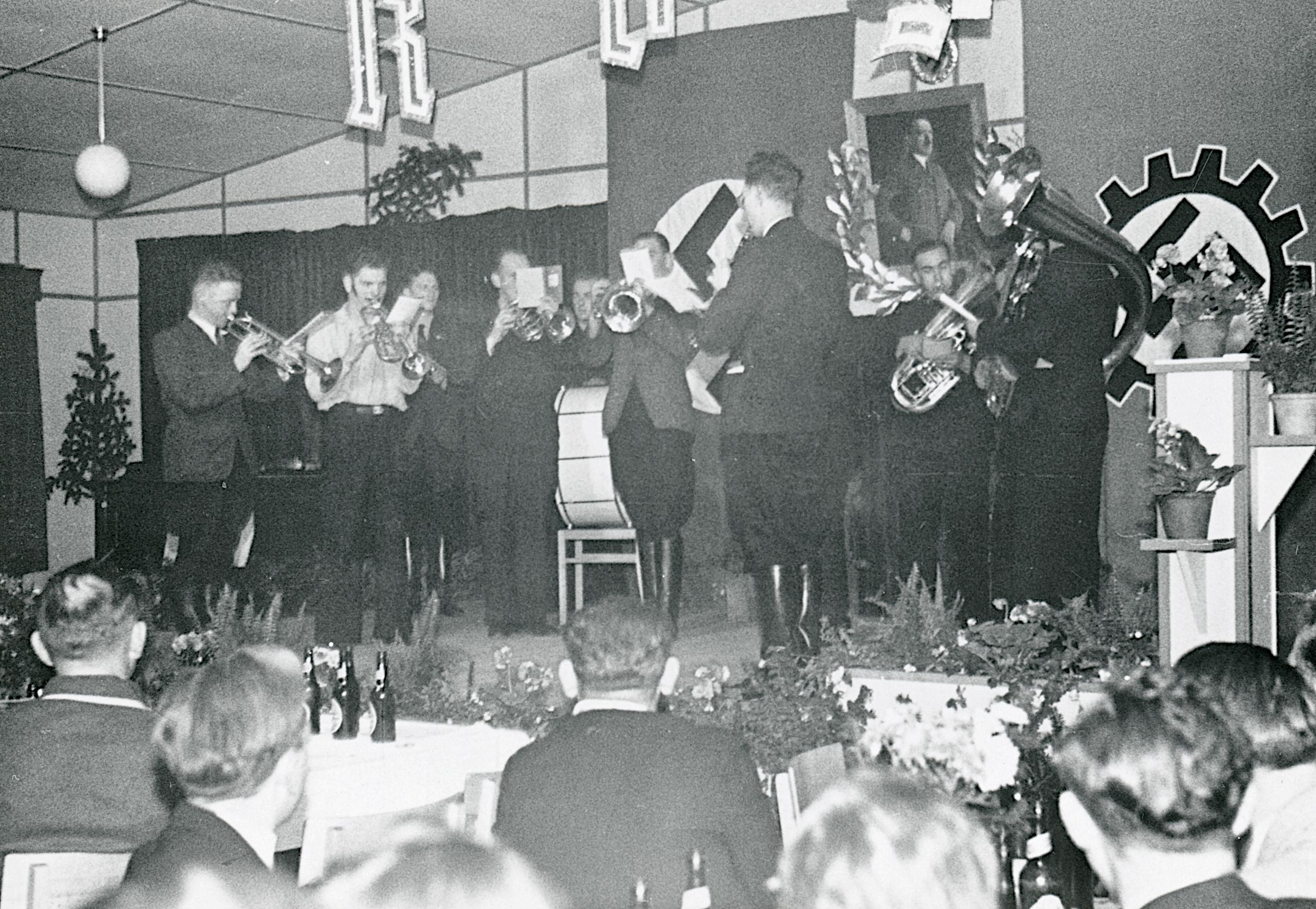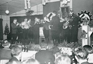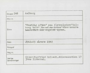 Maskingenkendt tekst fra fotokuvert: Festlig aften paa flyvepladsen Aalborg West.