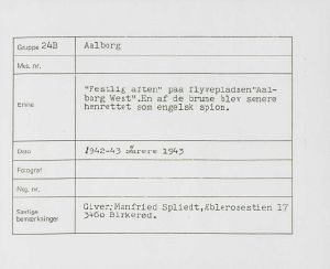 Maskingenkendt tekst fra fotokuvert: Festlig aften paa flyvepladsen Aalborg West.