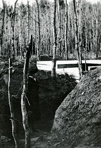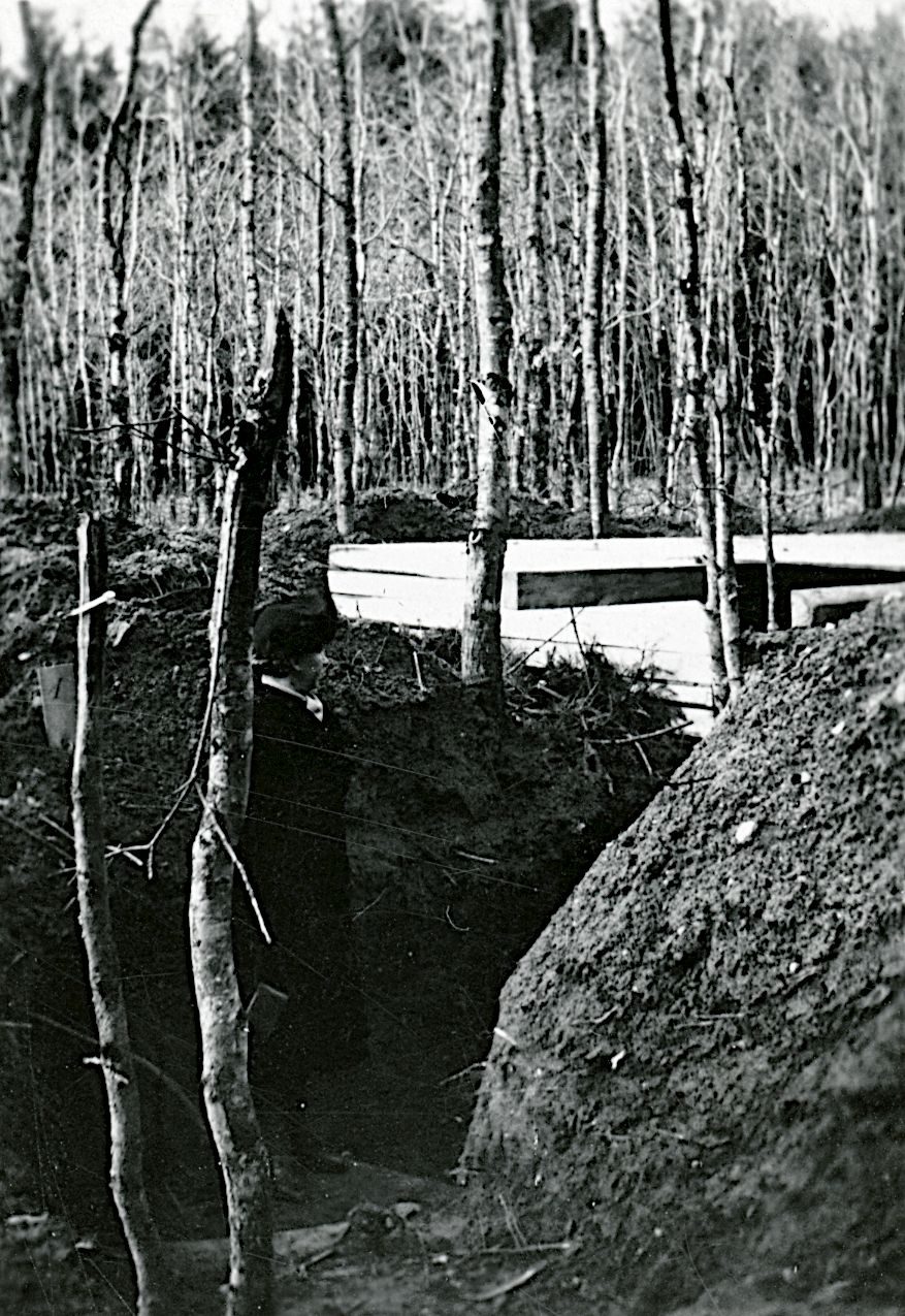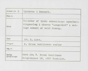 Maskingenkendt tekst fra fotokuvert: Billeder af tyske ammunitios- og befæstningsanlæg i skoven "Langeskov" i østlige udkant af 6630 Brørup.