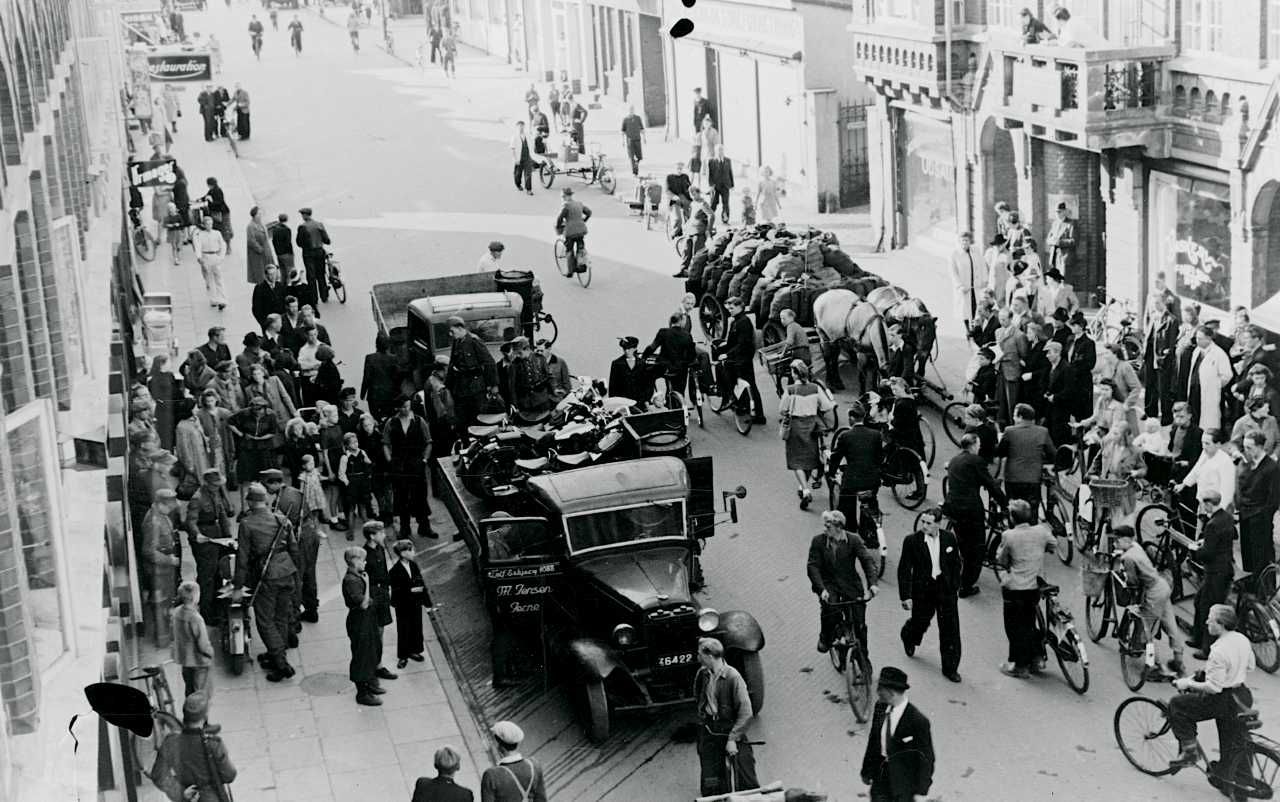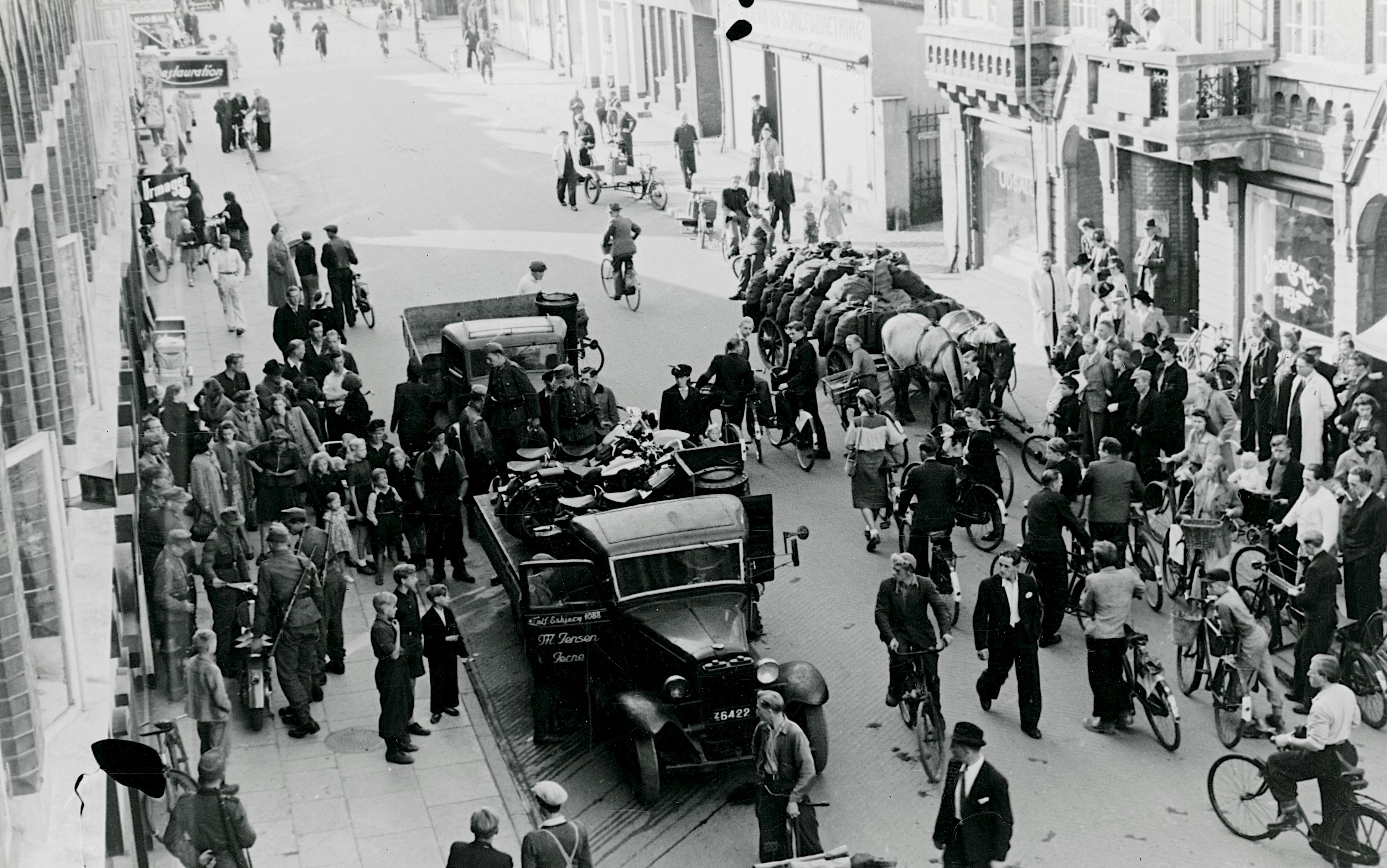 Tyskerne beslaglægger motorcykler i Esbjerg under den militære undtagelsestilstand efter d. 29. august 1943.
