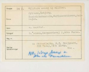 Maskingenkendt tekst fra fotokuvert: Jylland, Esbjerg. Mandskabsbunker, Marinestationen. Hulvej.