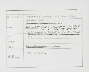 Maskingenkendt tekst fra fotokuvert: Esbjerg flyveplads. Bombelageret Hønsefarmen.