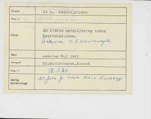 Maskingenkendt tekst fra fotokuvert: En sidste patruljering inden Kapitulationen.