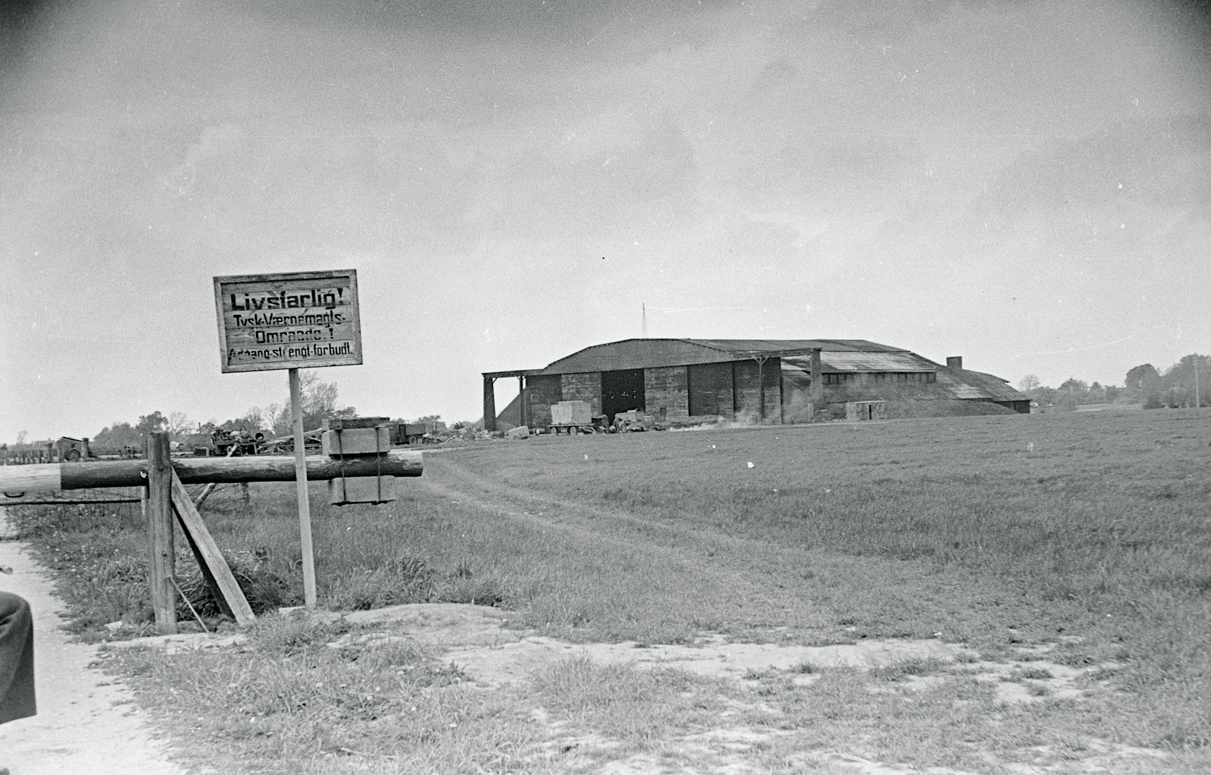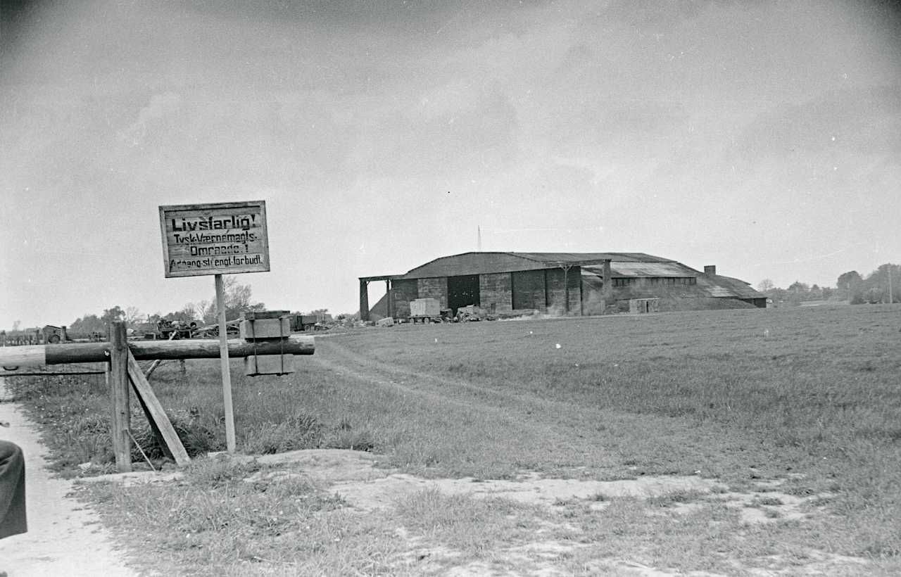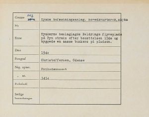 Maskingenkendt tekst fra fotokuvert: Tyskerne beslaglagde Beldringe flyveplads på Fyn straks efter besættelsen 1940 og byggede en masse bunkers på pladsen.
