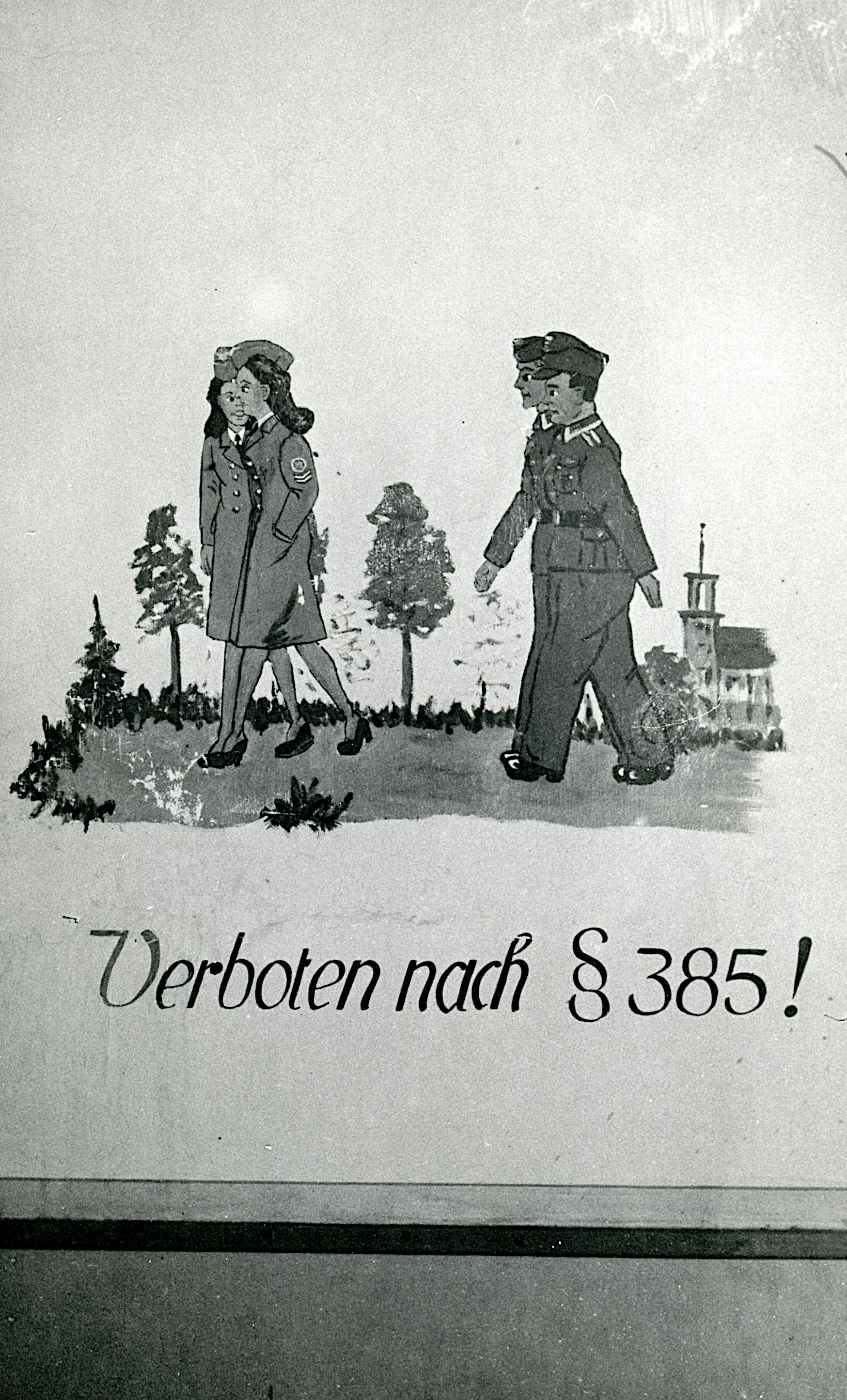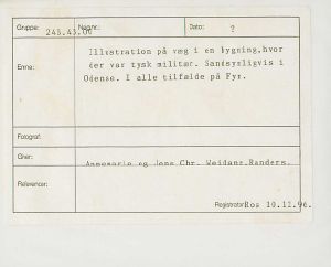 Maskingenkendt tekst fra fotokuvert: Illustration på væg i en bygning, hvor der var tysk militær. Sandsynligvis i Odense. I alle tilfælde på Fyn.