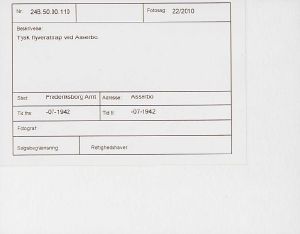 Maskingenkendt tekst fra fotokuvert: Tysk flyverattrap ved Asserbo.