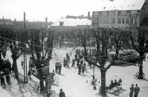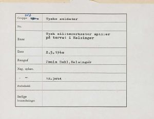 Maskingenkendt tekst fra fotokuvert: Tysk militærorkester spiller på torvet i Helsingør
