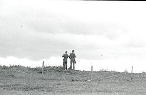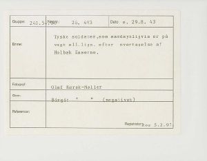 Maskingenkendt tekst fra fotokuvert: Tyske soldater, som sandsynligvis er på vagt ell.lign. efter overtagelse af Holbæk Kaserne.