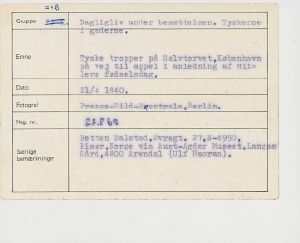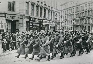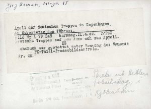 Tyske tropper på Sølvtorvet i København, på vej til appel i anledning af Hitlers fødselsdag.