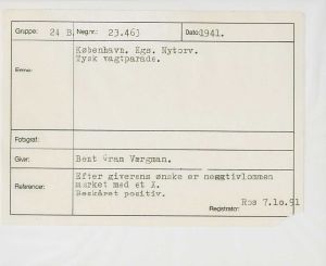Maskingenkendt tekst fra fotokuvert: København. Kgs. Nytorv. Tysk vagtparade.