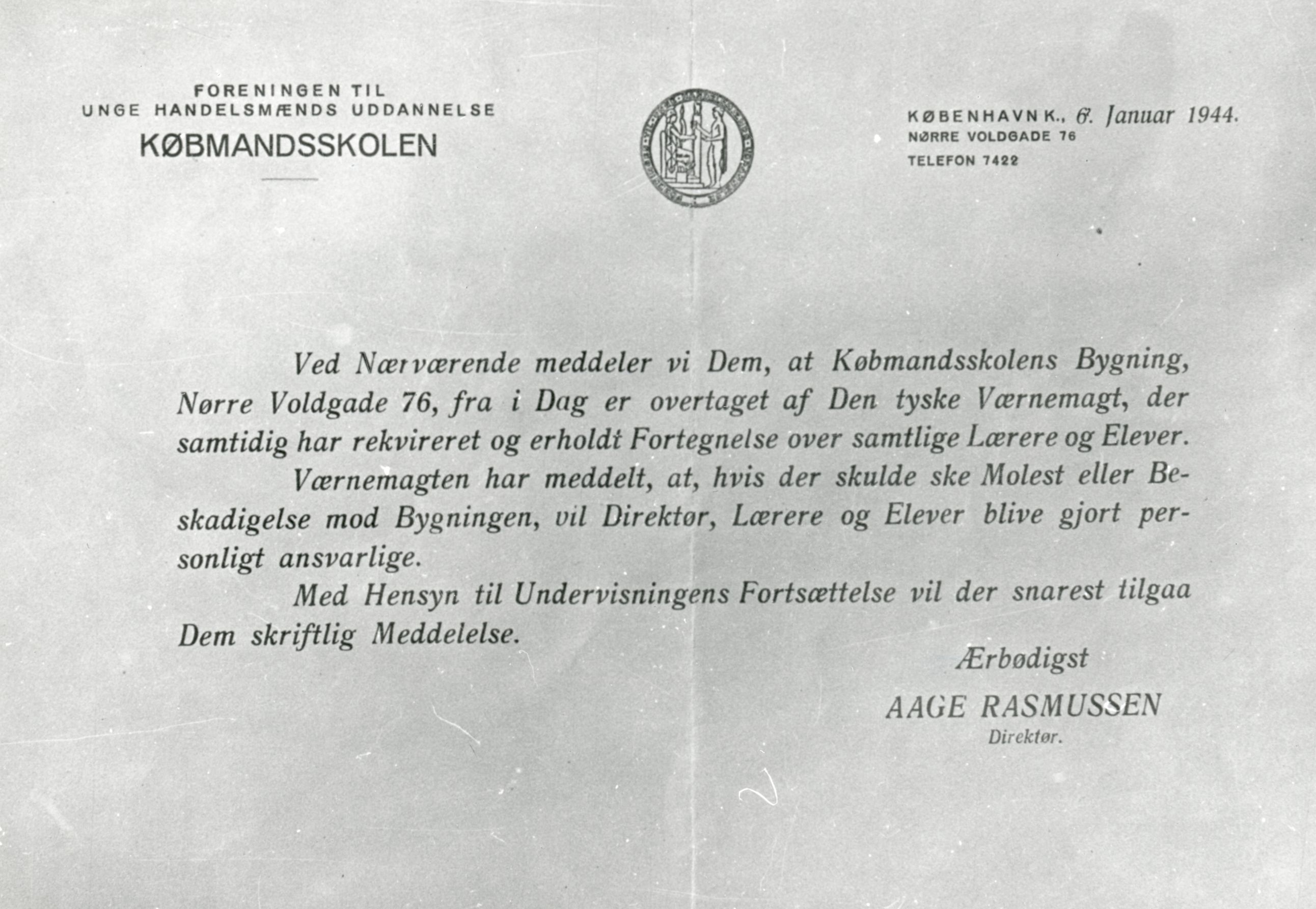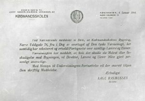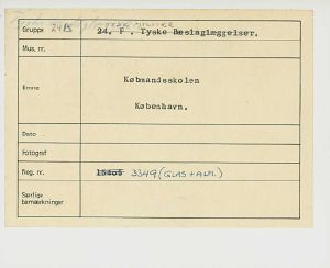 Maskingenkendt tekst fra fotokuvert: Købmandsskolen København.