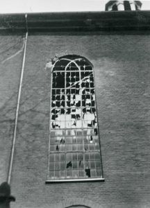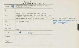 Maskingenkendt tekst fra fotokuvert: 22/4 1945 Søndag morgen. Kamp mellem ungarnske, østrigske og tyske politisoldater på den anden side. Førstnævnte skulle være sendt til fronten.