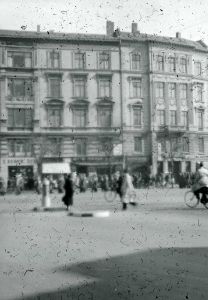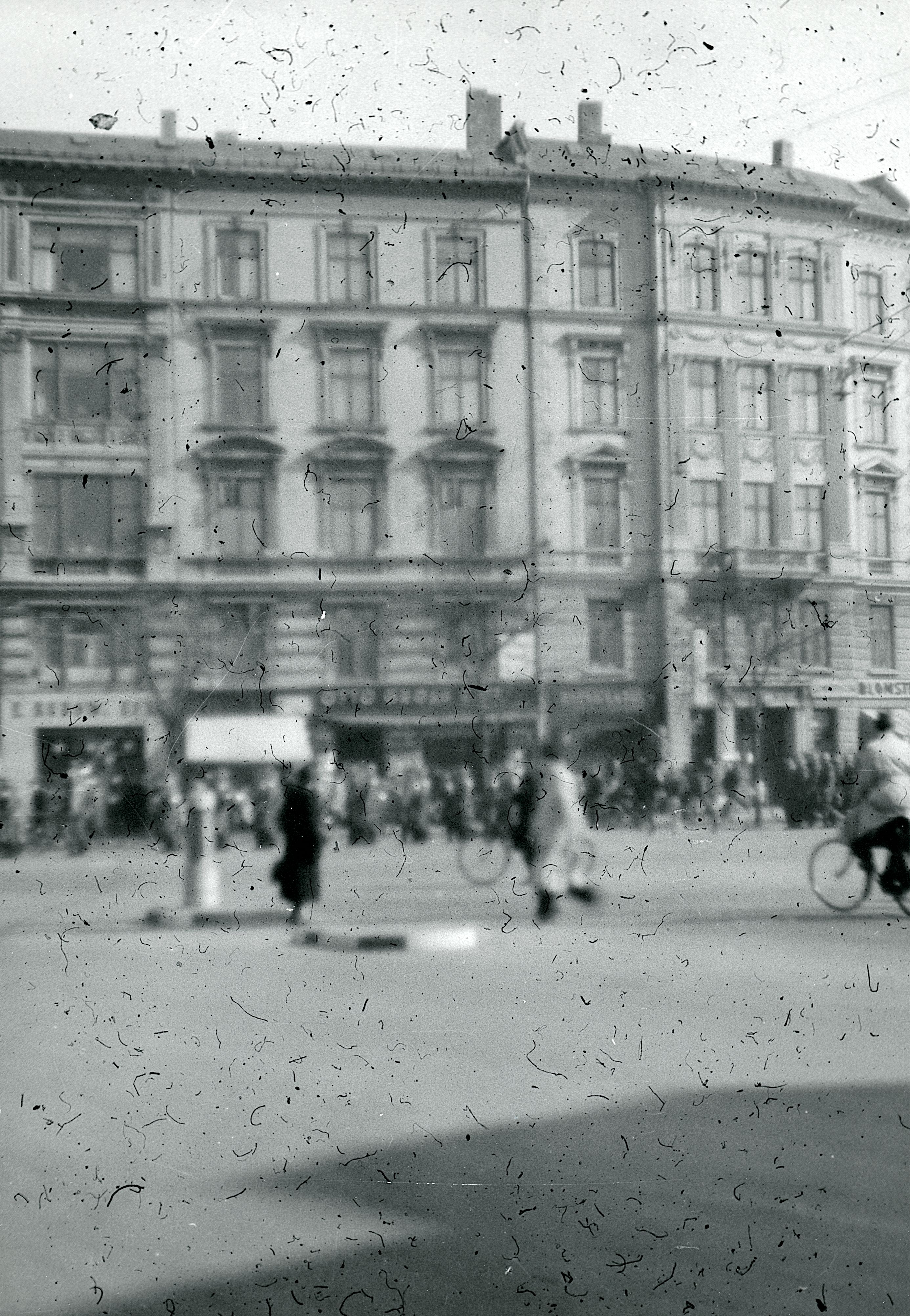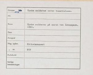 Maskingenkendt tekst fra fotokuvert: Tyske soldater på march ved Århusgade. 1941.