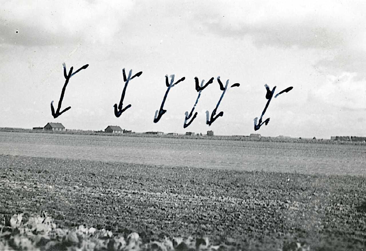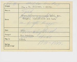 Maskingenkendt tekst fra fotokuvert: Tyske Batteriopstilling nord for Dragør. Camoufleret som Hus.