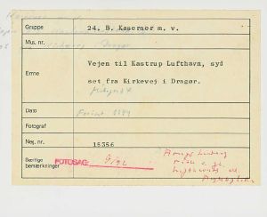 Maskingenkendt tekst fra fotokuvert: Vejen til Kastrup Lufthavn, syd set fra Kirkevej i Dragør.