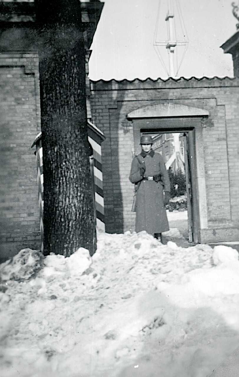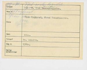 Maskingenkendt tekst fra fotokuvert: Tysk Vagypost, foran Husarkaserne.