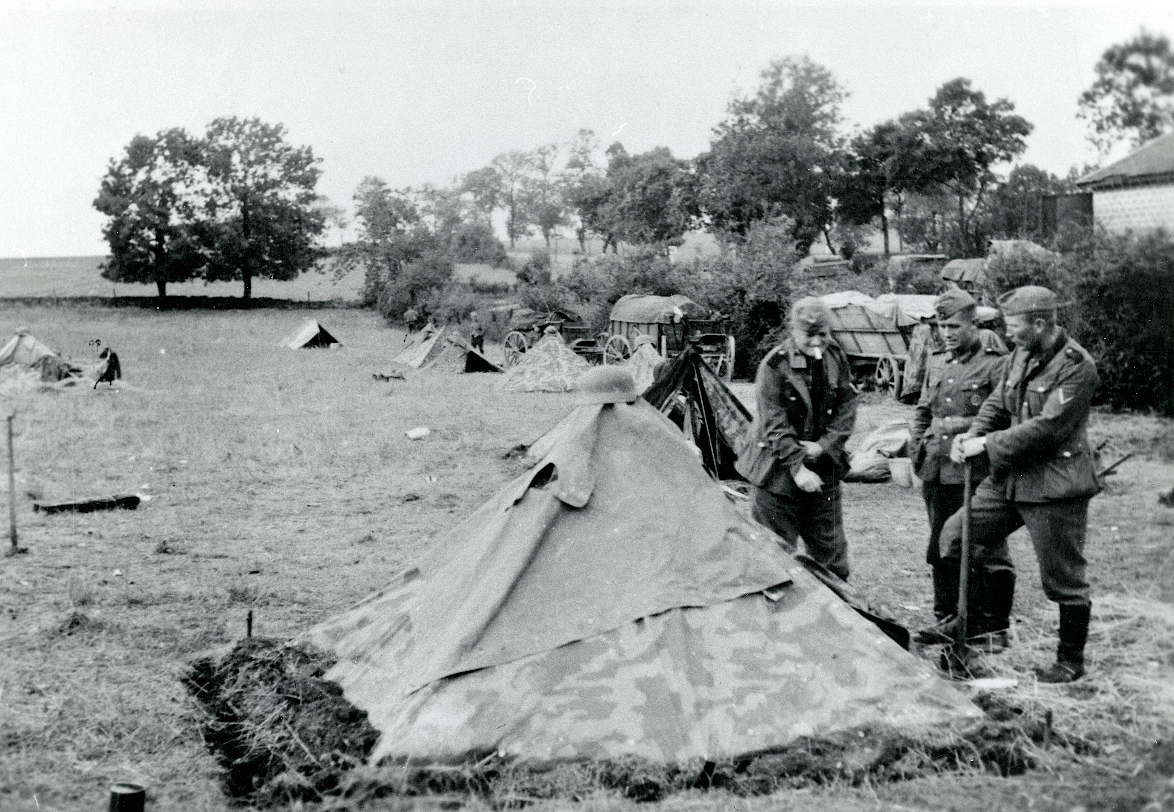 Maskingenkendt tekst fra fotokuvert: Tyske soldater slår lejr.