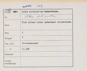 Maskingenkendt tekst fra fotokuvert: Tysk soldat nyder aabenbart tilværelsen.