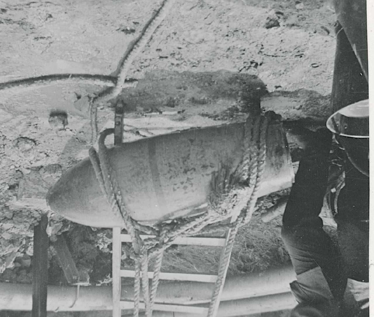 Maskingenkendt tekst fra fotokuvert: En forsager bringes til eksplosion af tyske soldater
