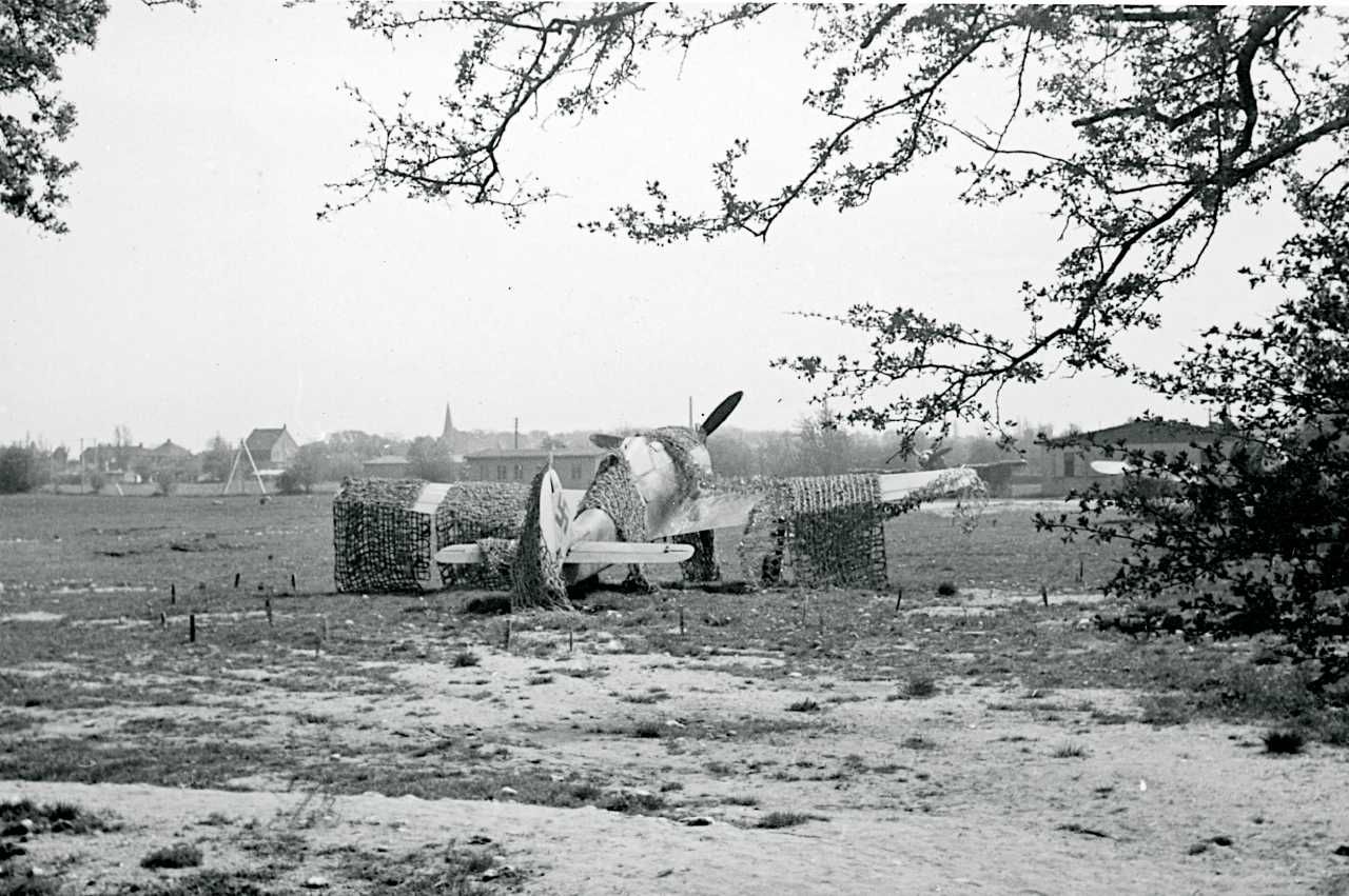 Maskingenkendt tekst fra fotokuvert: Camoufleret flyvemaskine. Amager?