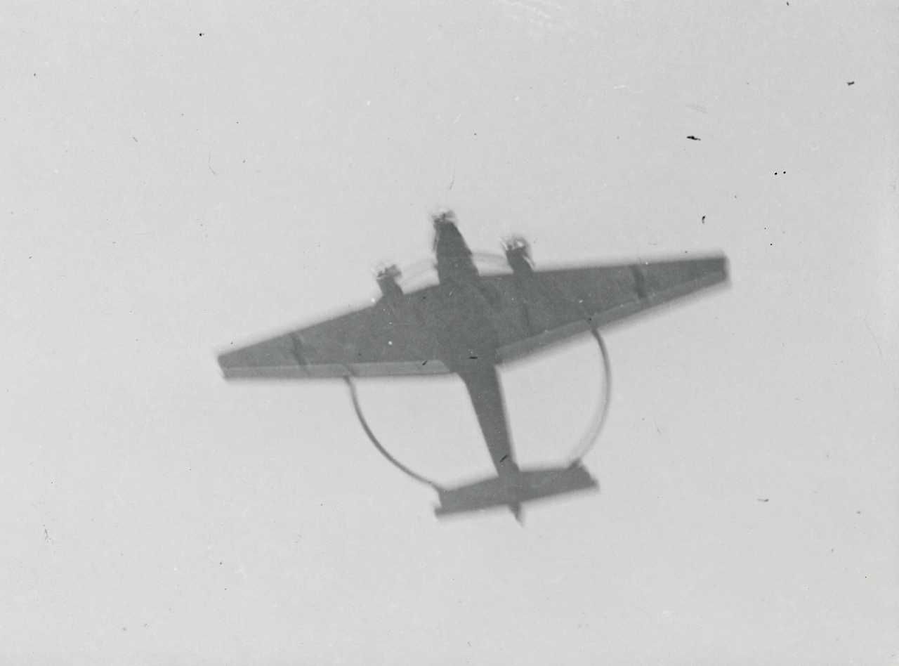 Maskingenkendt tekst fra fotokuvert: Tysk minesøgnings-fly.