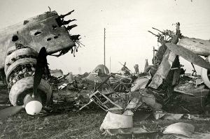 Maskingenkendt tekst fra fotokuvert: Ødelagte tyske fly. Efter kapitulatione Uden stedsangivelse.