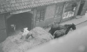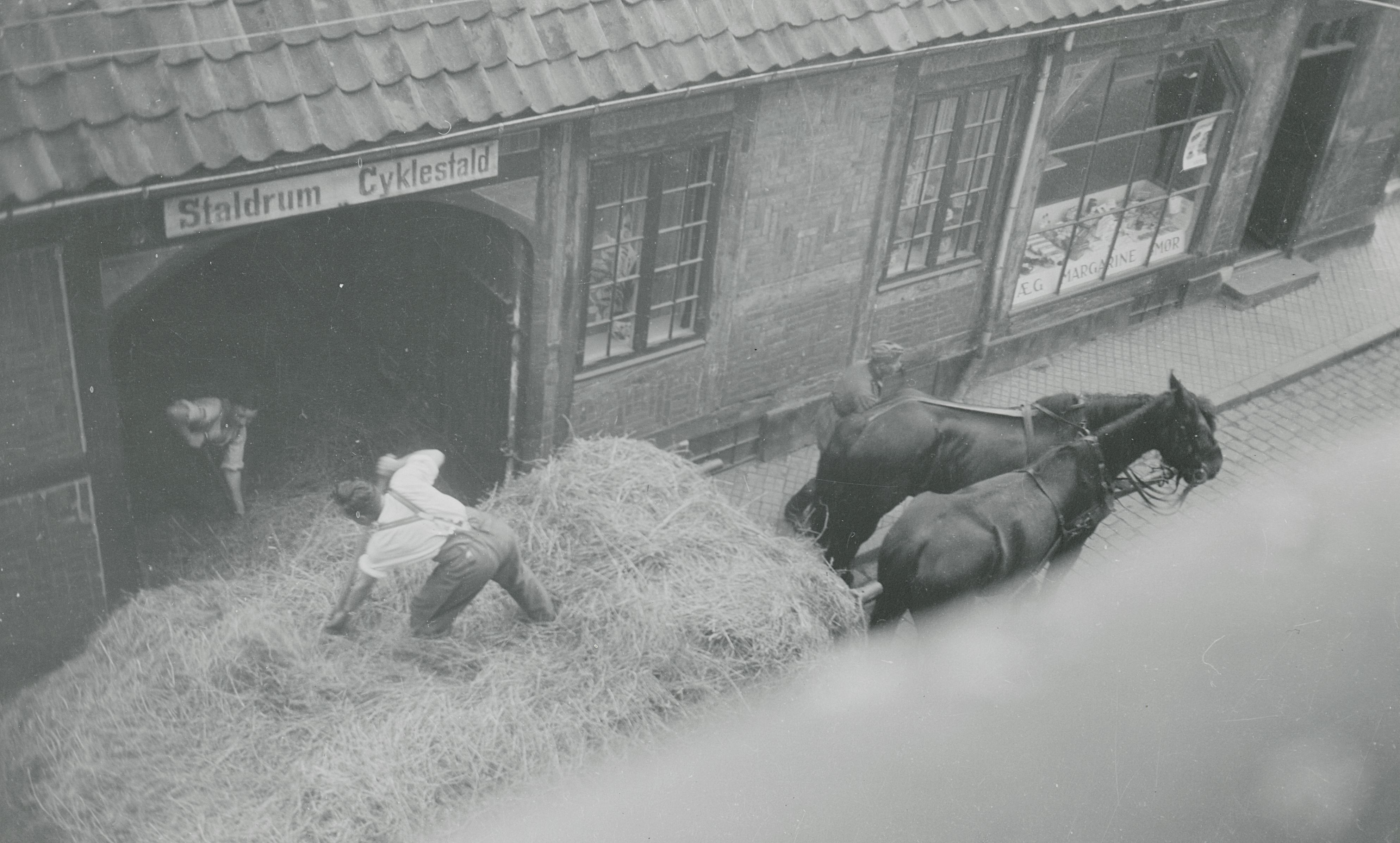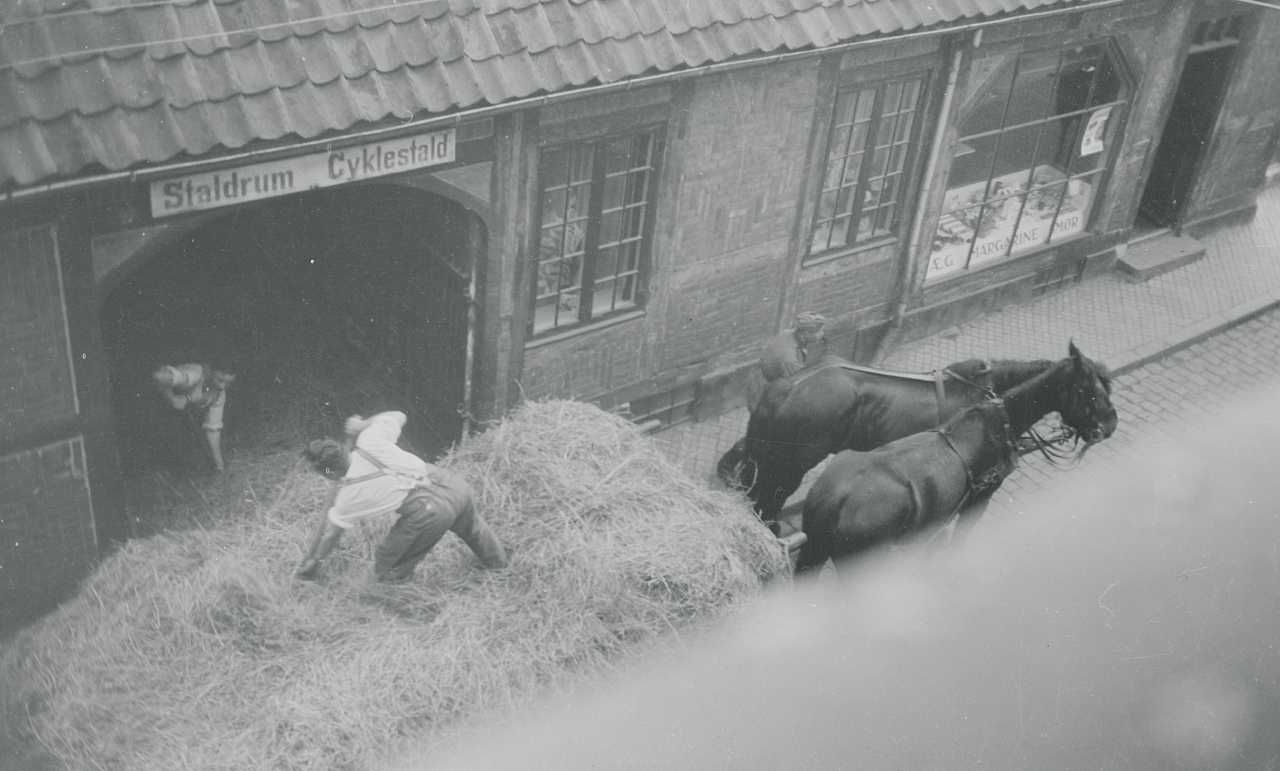 Maskingenkendt tekst fra fotokuvert: Tyskerne henter hø. Helsingør Maj 1940.