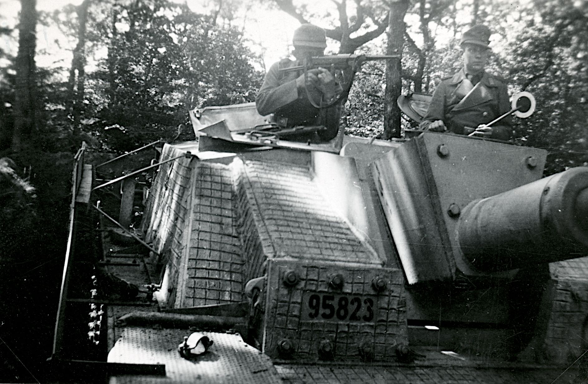 Maskingenkendt tekst fra fotokuvert: Sandsynligvis StuG III Ausf. G Sturmgeschütz anvendt mod infanterimål
