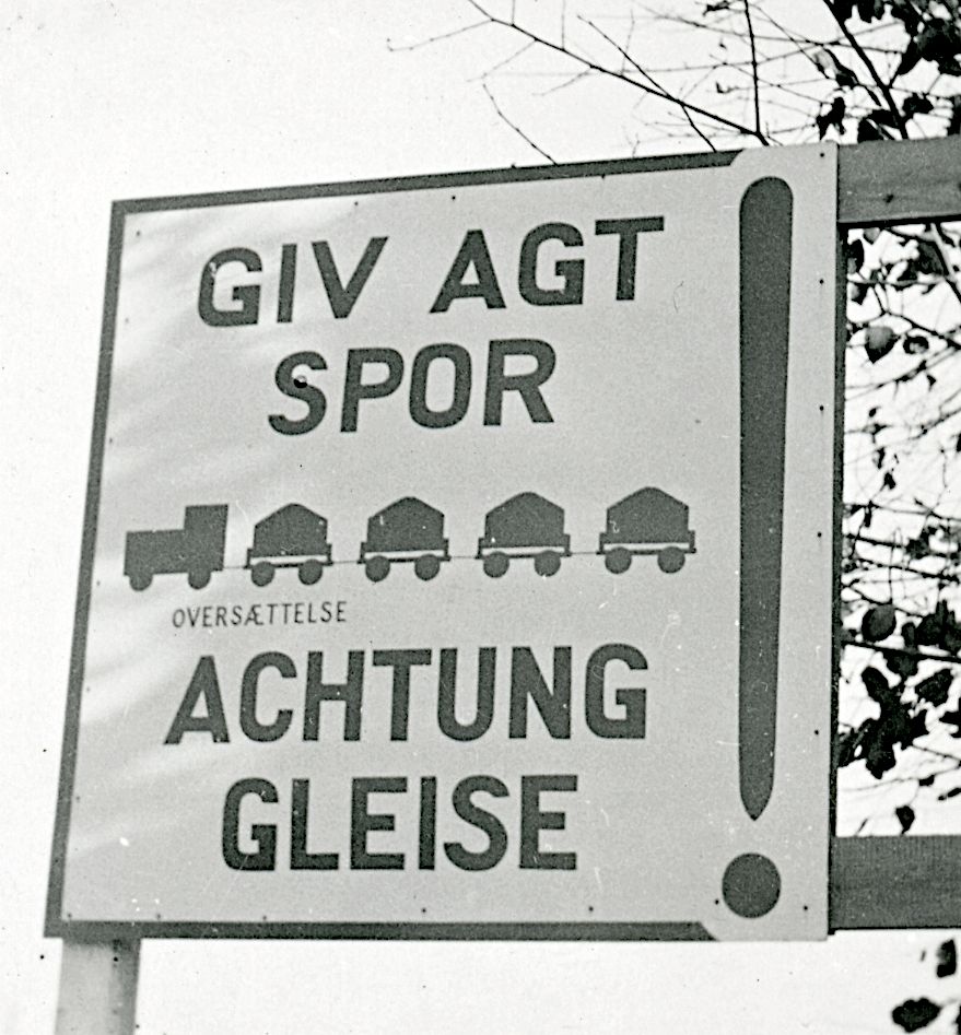 Maskingenkendt tekst fra fotokuvert: Advarselsskilt paa dansk og tysk opstillet paa Amager.