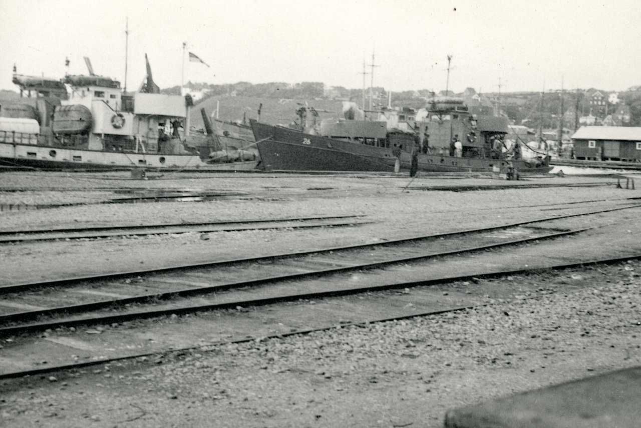 Maskingenkendt tekst fra fotokuvert: Armerede tyske skibe i Lemvig Havn