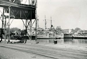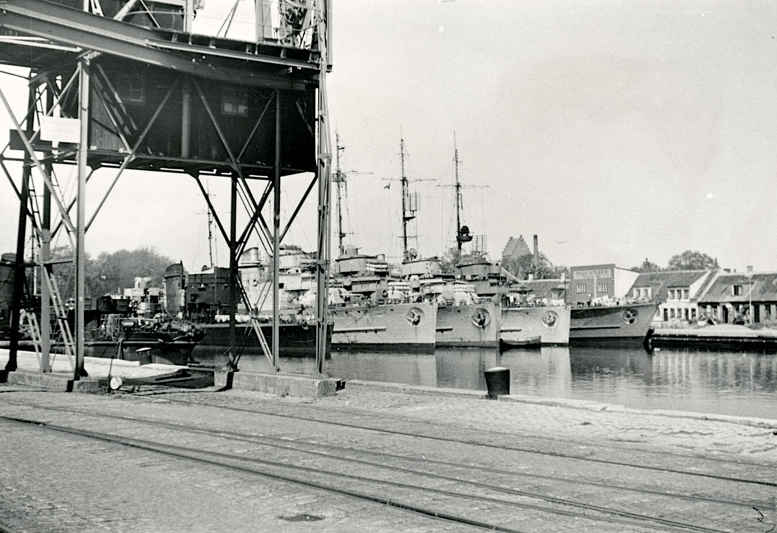 Maskingenkendt tekst fra fotokuvert: Tyske krigsskibe i Køge Havn.