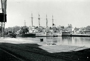 Maskingenkendt tekst fra fotokuvert: Tyske krigsskibe i Køge Havn.