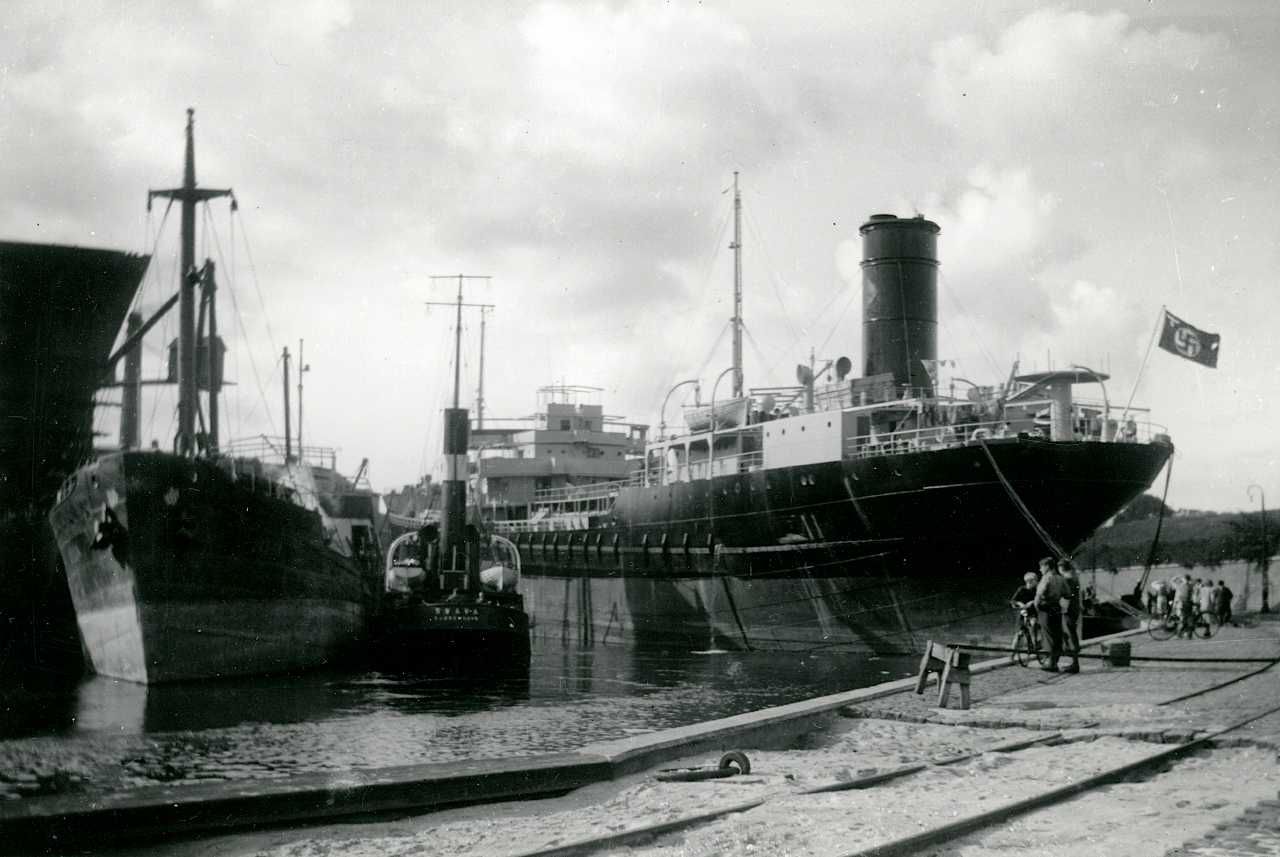 Maskingenkendt tekst fra fotokuvert: Tyske skibe i Helsingør havn